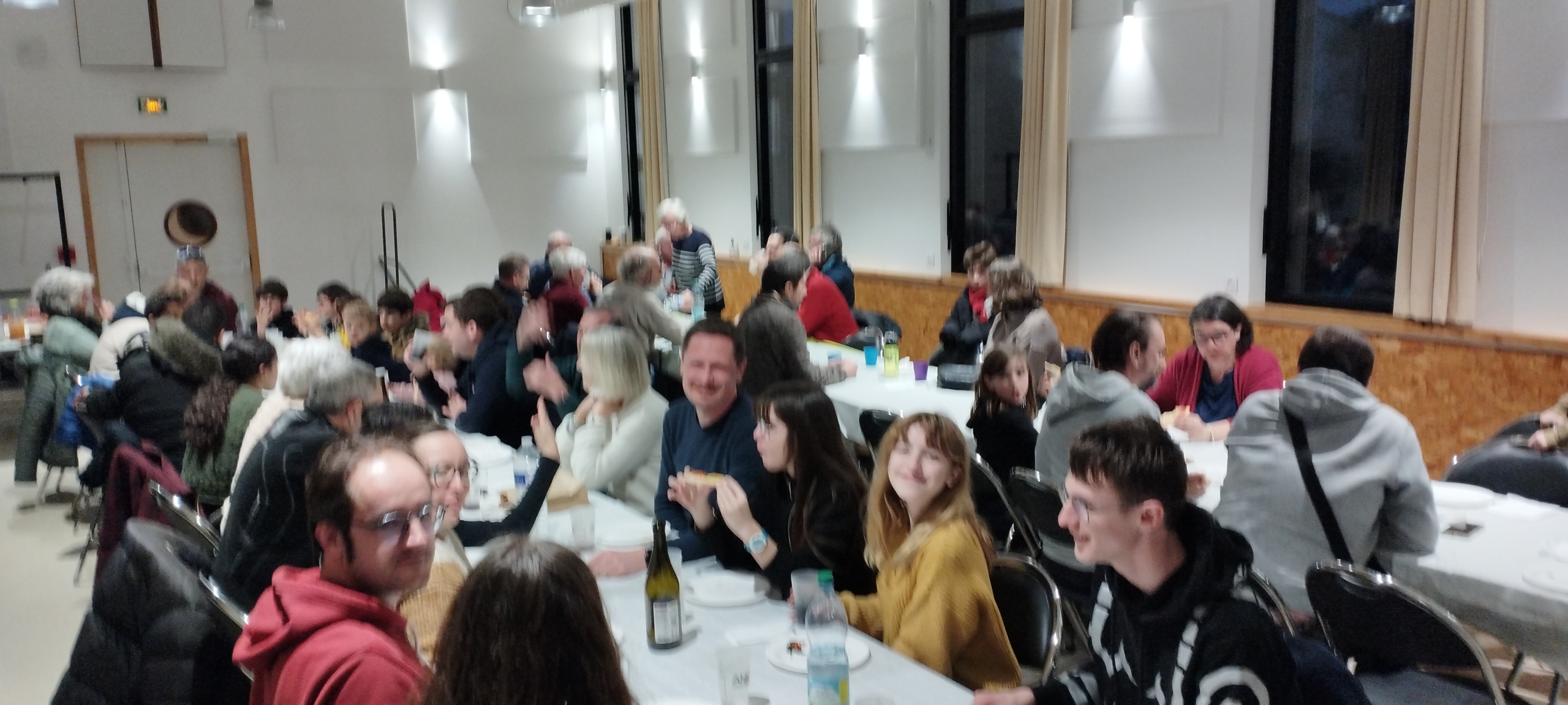 À 19 h, place à la convivialité avec un repas partagé. Nous étions environ 45 personnes à partager des pizzas dans une ambiance chaleureuse et très sympathique. Un moment d’échange apprécié de tous, avant de poursuivre la soirée sous les étoiles.